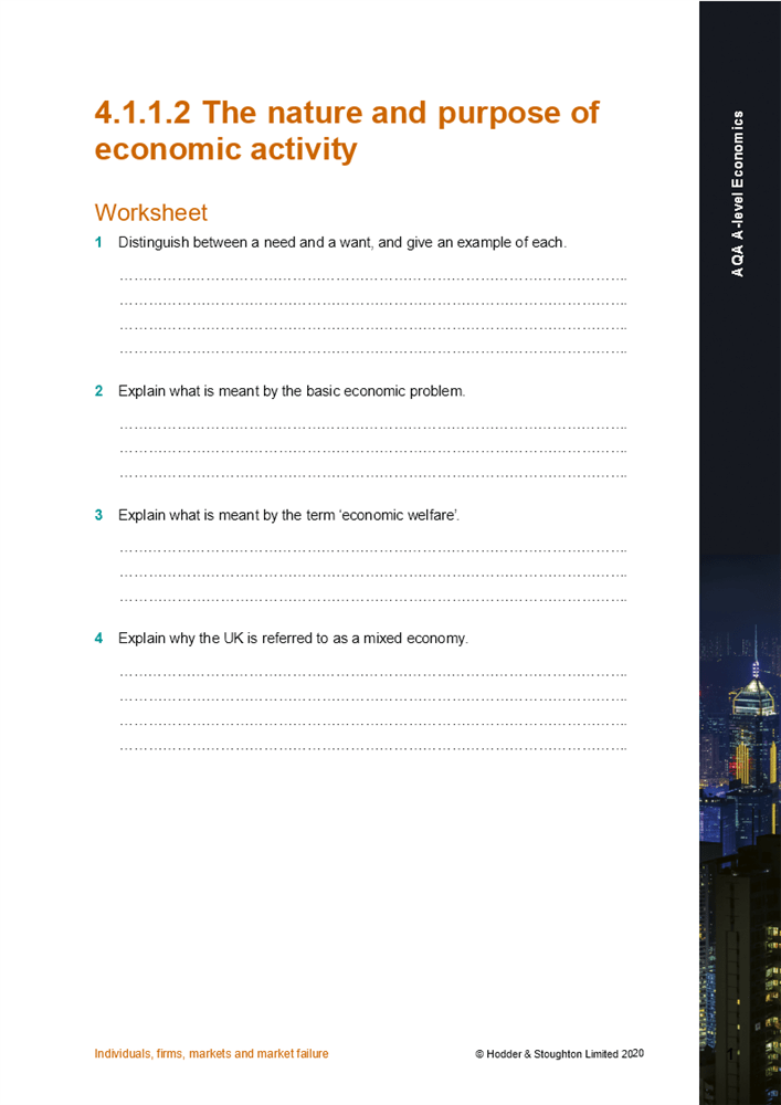 Free comprehensive igcse and gcse economics revision material; Discover the fundamental law of supply and demand; Understand the concepts of sustainable . Economics is the science of scarcity. In this worksheet, we will practice comparing different types of needs, resources, and goods and describing the effect of needs on economic activities. In this worksheet, we will practice recognizing the reasons pertaining to the existence of the economic problem, the definition of economics, . Check out this freebie that includes 5 nonfiction paragraphs about basic economics written in different text structures. Its basic subdivisions (national economic. In this system the government does not intervene. Start basic economics while kids are young to understanding complex concepts. Unit 1 basic economic concepts vocabulary worksheet. These economics printables and worksheets for elementary will . Individuals own the factors of production and they decide the answers of the basic economic questions.